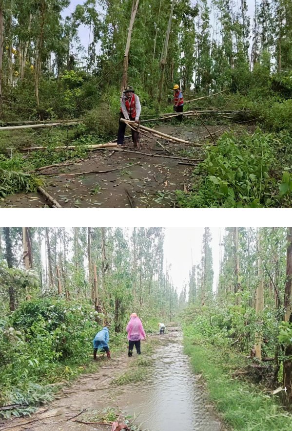 2025/06/196月14日,今年第1号台风“蝴蝶”在广东省雷州半岛沿海强势登陆,导致当地遭遇狂风暴雨侵袭,林区基础设施与林木资源均受到不同程度的损失。台风过境后,中林雷林公司所属各单位即刻响应,迅速组织精干力量,争分夺秒投入灾后清理和道路疏通工作,全力保障林区道路畅通和林区生产生活秩序尽快恢复。