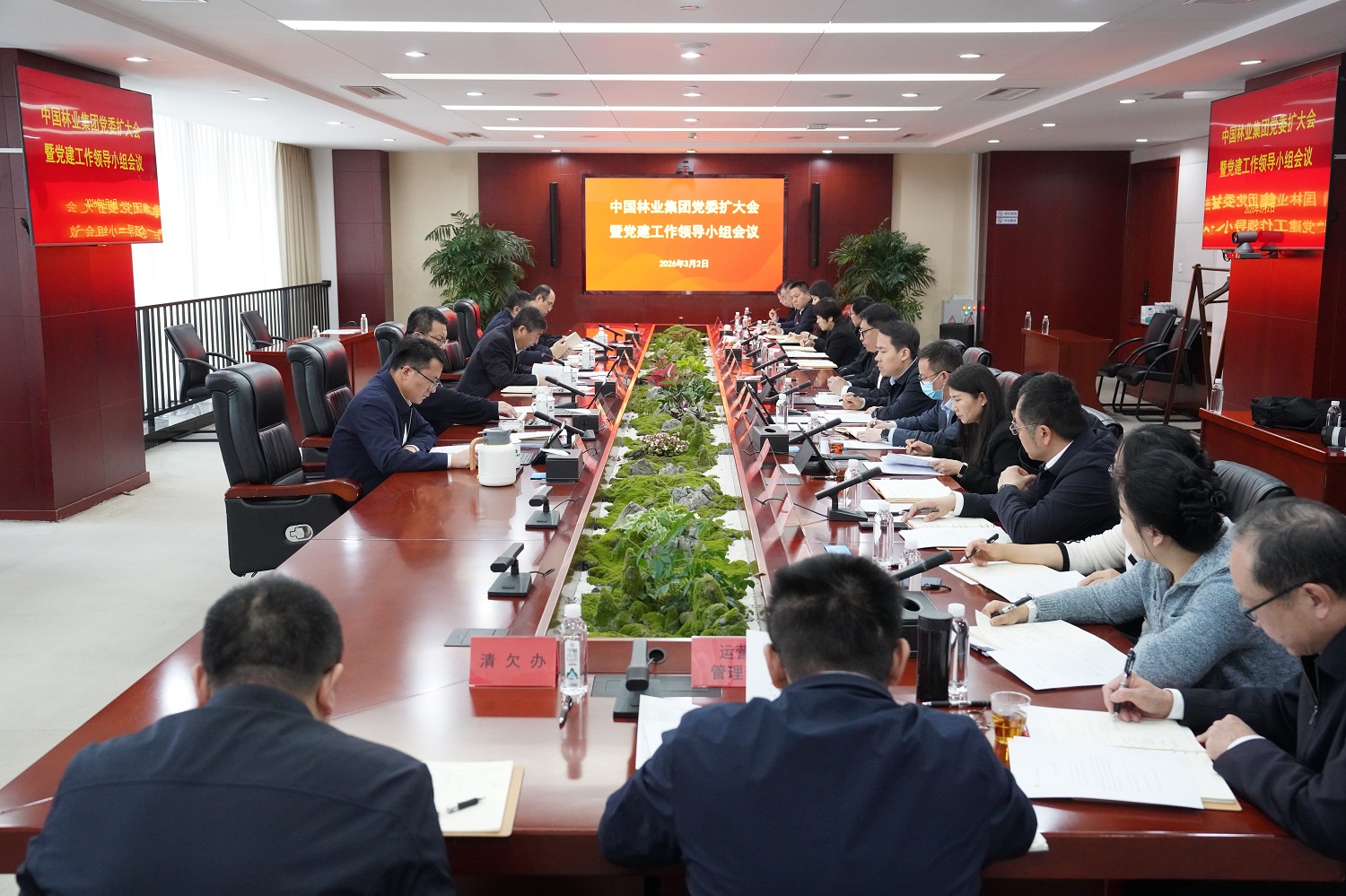 2026/03/023月2日,中国林业集团党委召开扩大会暨党建工作领导小组会议,认真学习贯彻习近平总书记关于树立和践行正确政绩观学习教育的重要讲话和重要指示精神,传达学习中央党的建设工作领导小组会议部署、中共中央办公厅《关于在全党开展树立和践行正确政绩观学习教育的通知》精神、国务院国资委党委扩大会议暨党的建设工作领导小组会议精神,研究部署启动集团树立和践行正确政绩观学习教育工作。集团党委书记、董事长单忠立主持会议并讲话,集团党委班子成员梁中基、王迎财、王云飞、翁文林出席会议并作发言。